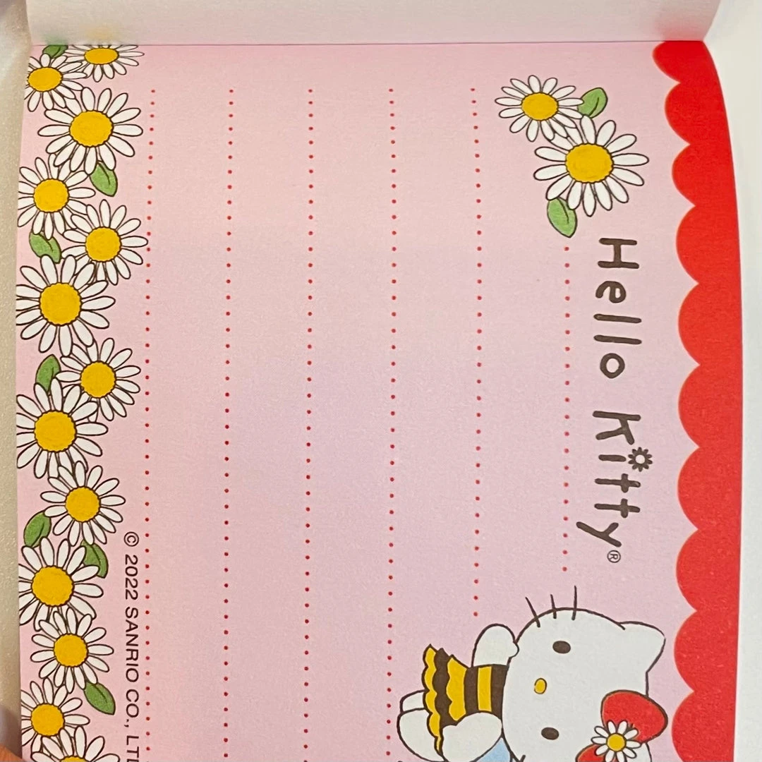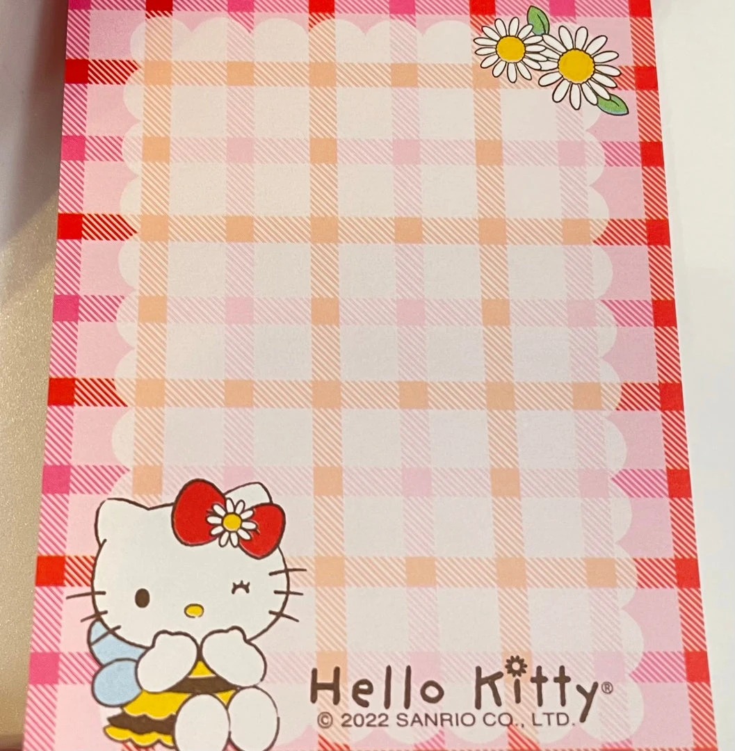 This Hello Kitty memo pad is absolutely adorable! The spring daisy design is so cute and perfect for jotting down quick notes. The size is compact and convenient to carry around. Definitely a must-have for Hello Kitty fans!